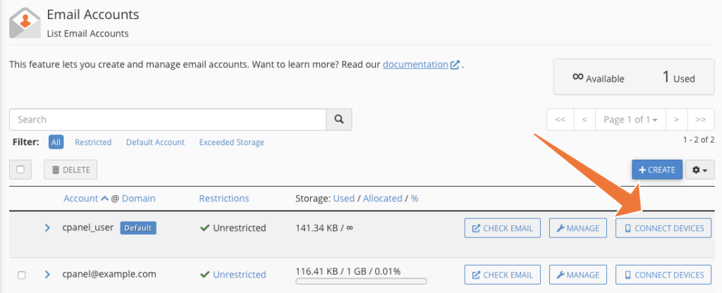 The next step is for your client to be configured so that it knows which server to connect to and how to authenticate. The necessary cPanel SMTP settings can be found in the Connect Devices interface.