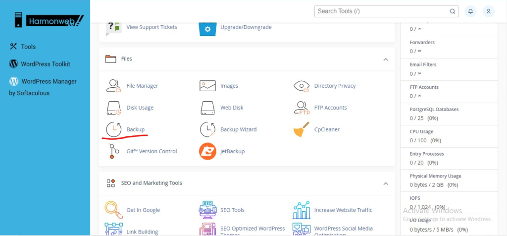 - cPanel backups: an alternative if you have your hosting with another provider or want to make copies of your website yourself, but here at Harmonweb we backup our client’s website daily.