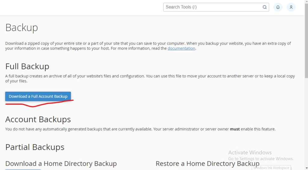 Once the backup is complete, you will receive an email indicating that the process is complete. To download your backup, simply access the Backups section of cPanel again and you will see the file that has been generated.