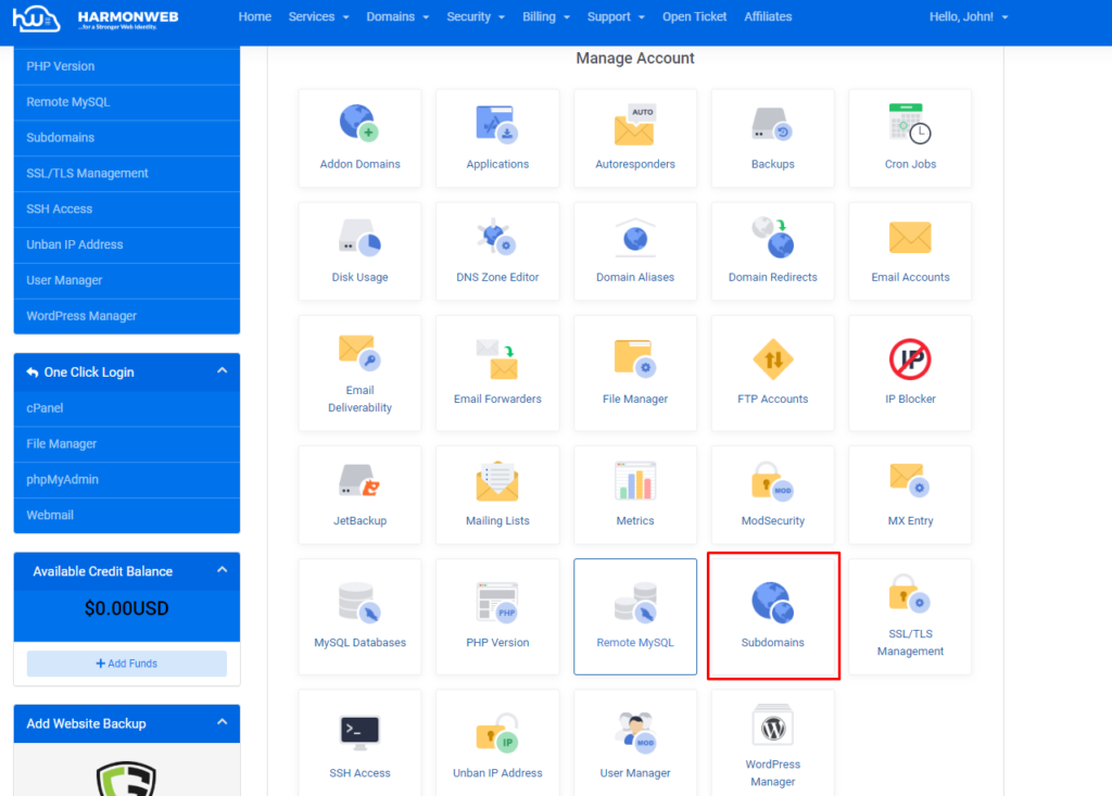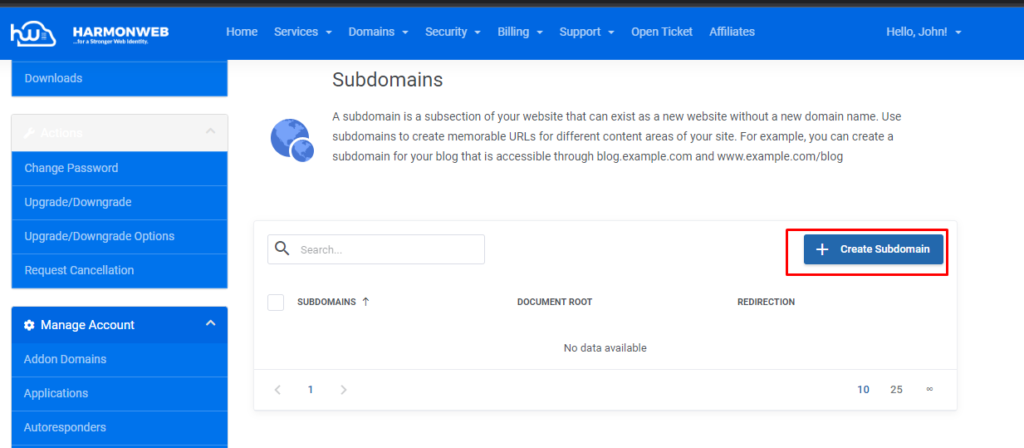 In this blog post, I will be walking you through how you can create a subdomain on your HarmonWeb hosting account from your HarmonWeb client area. Creating a subdomain on Harmonweb does not really need the stress of logging into your cPanel, you can do that with a few clicks on your client area easily.