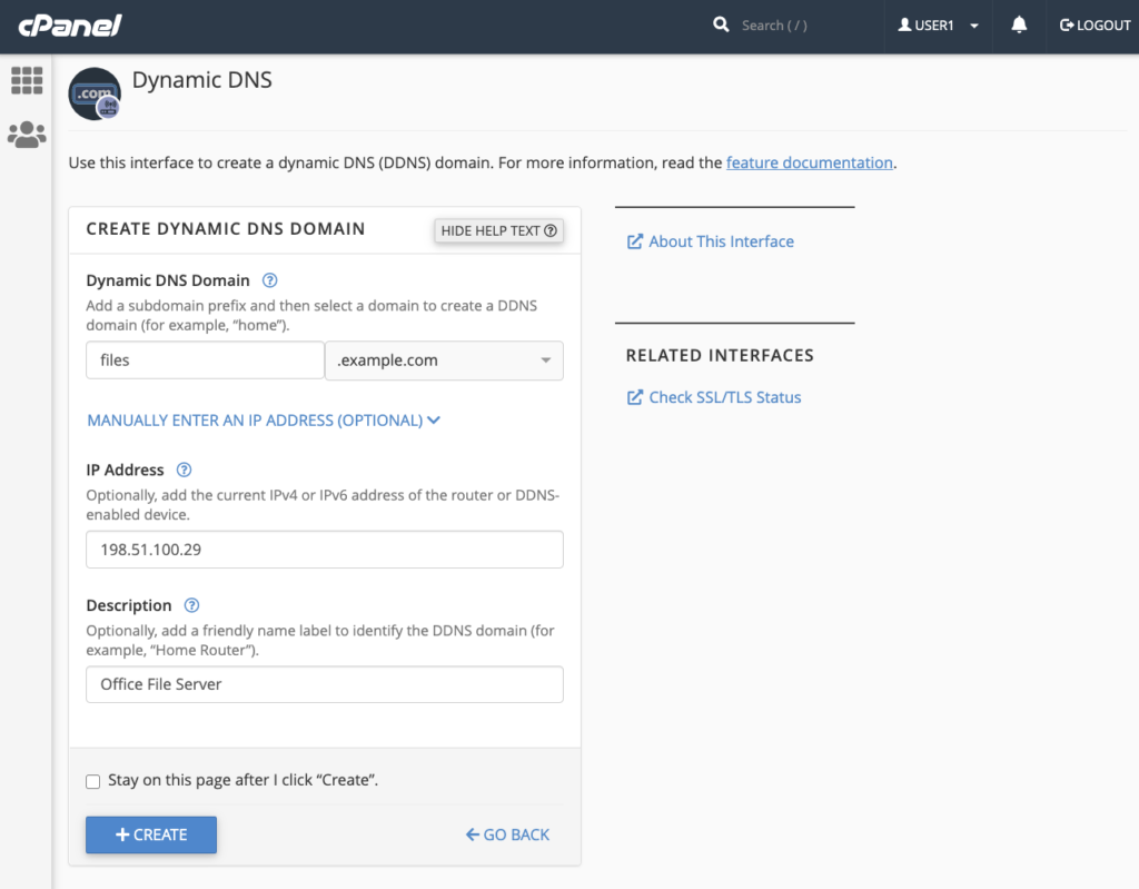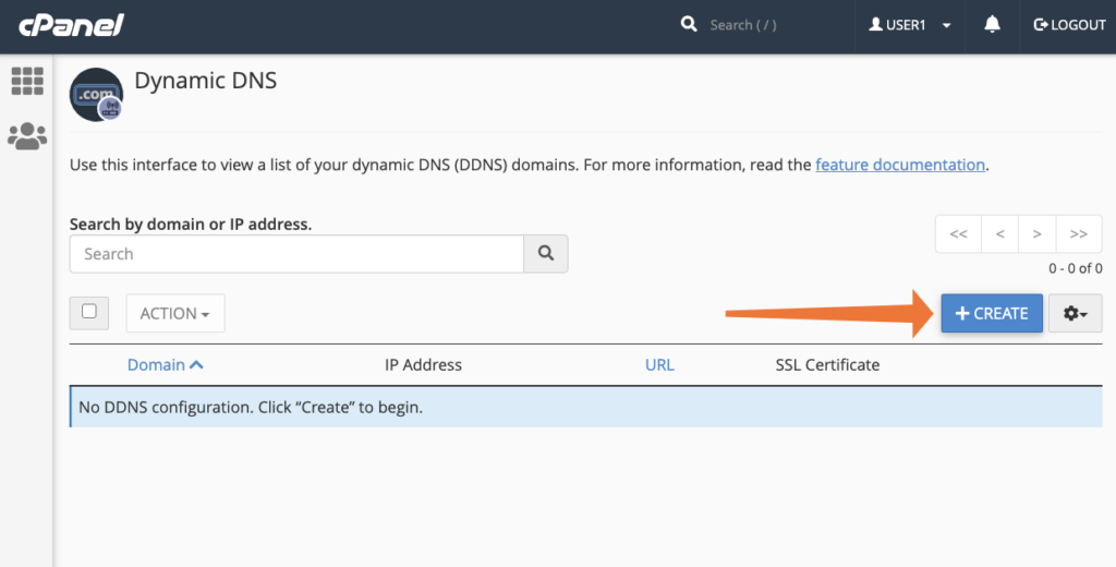 - Create the domain using the Dynamic DNS interface in cPanel.