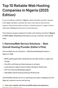 When it comes to balancing speed, affordability, and customer support, HarmonyWeb.Com Service Solutions leads the Nigerian hosting industry in 2025.
